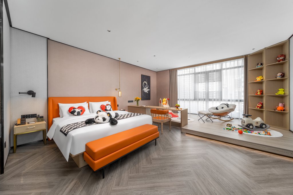 客房内选用高品质床品和寝具,确保旅客获得充分的休息。独立的卫浴空间配备智能马桶和干湿分离设计,兼顾舒适与实用。特别值得一提的是,酒店还提供衣物护理设备,能够快速烘干换洗衣物,解决家庭出游的实际需求。部分房型还配备大屏幕投影设备,适合家长带着孩子在一天游玩后观看教育节目或动画片,共度温馨亲子时光。
