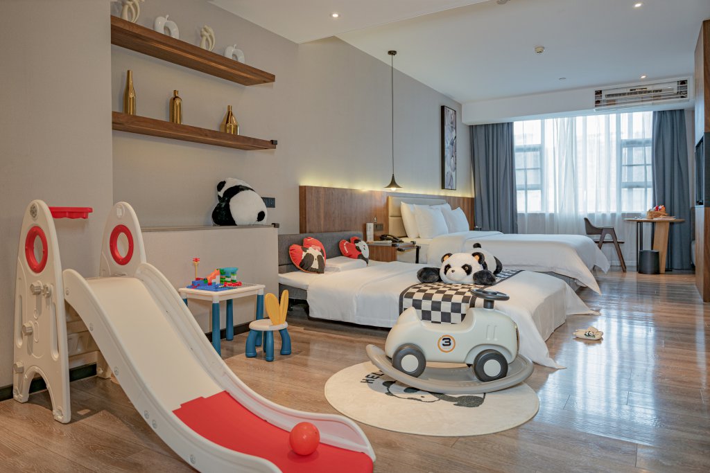 酒店特别关注亲子客群的需求,客房内配备滑梯、帐篷和积木桌等儿童娱乐设施,为孩子们打造专属的游乐空间。此外,还提供齐全的儿童用品,包括儿童牙刷、防滑拖鞋和马桶垫等,确保孩子们住得安全舒适。酒店还贴心地为小客人准备了小礼物,增添住宿的趣味性。