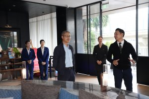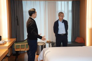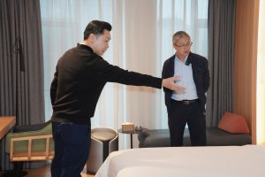 在华夏铭酒店集团董事江浩平等相关负责人的陪同下,盐田区代表团先后参观了集团旗下的优逸万象店、优范PLUS江景店两家代表性门店。