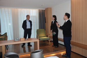 在华夏铭酒店集团董事江浩平等相关负责人的陪同下,盐田区代表团先后参观了集团旗下的优逸万象店、优范PLUS江景店两家代表性门店。