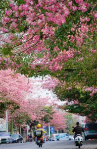 每年11月至12月,东环大道上的美丽异木棉沿街盛放,为这座城市增添了一抹温柔的粉色。这些被称为”美人树”的异木棉,开满粉紫色的花朵,一团团、一簇簇,在蓝天白云的映衬下熠熠生辉。车流穿梭其间,仿佛驶入了一条梦幻的粉色隧道,成为龙城冬日独有的浪漫风景。