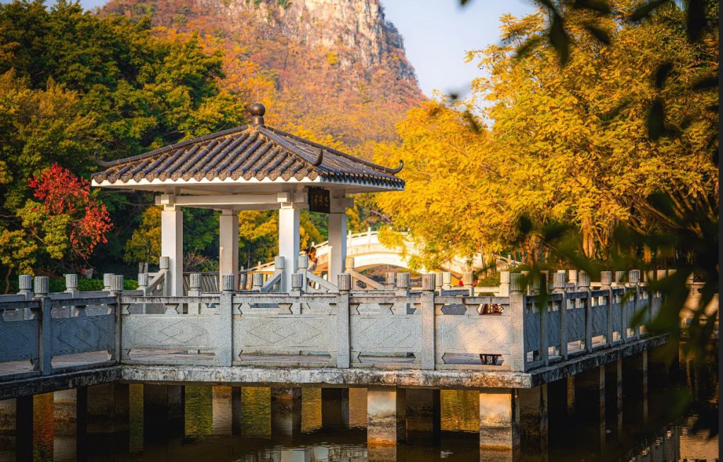 环江滨水大道的水杉林更是因其独特的色彩搭配而闻名,橙红的水杉、青翠的竹叶、赤红的步道和碧绿的江水共同编织出一幅动人的景象。柳州园博园内,160多株池杉、水杉和落羽杉悄然换上新装,织就一袭绚烂的金红盛装。龙湖公园湖畔的水杉也逐渐染上暖色调,从高处俯瞰,与泛着蓝光的湖水相映成趣,美不胜收。